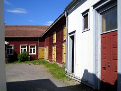 Already during the 1600s plots were separated from public areas by fences. The oldest fences were vertical board fences. The fence was high and completely closed. In the beginning, different plots were not separated from each other by fences, but for the keeping of domestic animals fences between plots became common. With the spreading of horizontal siding for buildings, fences also for the most part became horizontal in structure. From the first decades of the 1800s, fences began to have stately drive-in gates. The poles on the sides of the gates were high and often decorative. The gates themselves were two- sided and had, like the fence, no space between their boards, thus offering complete protection.